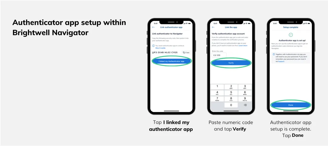 To help ensure you have control over your Brightwell account security, we provide you with a few ways to secure your account from unauthorized access. You can also set up and use an approved authenticator app to log in to your Navigator account online or in the app.